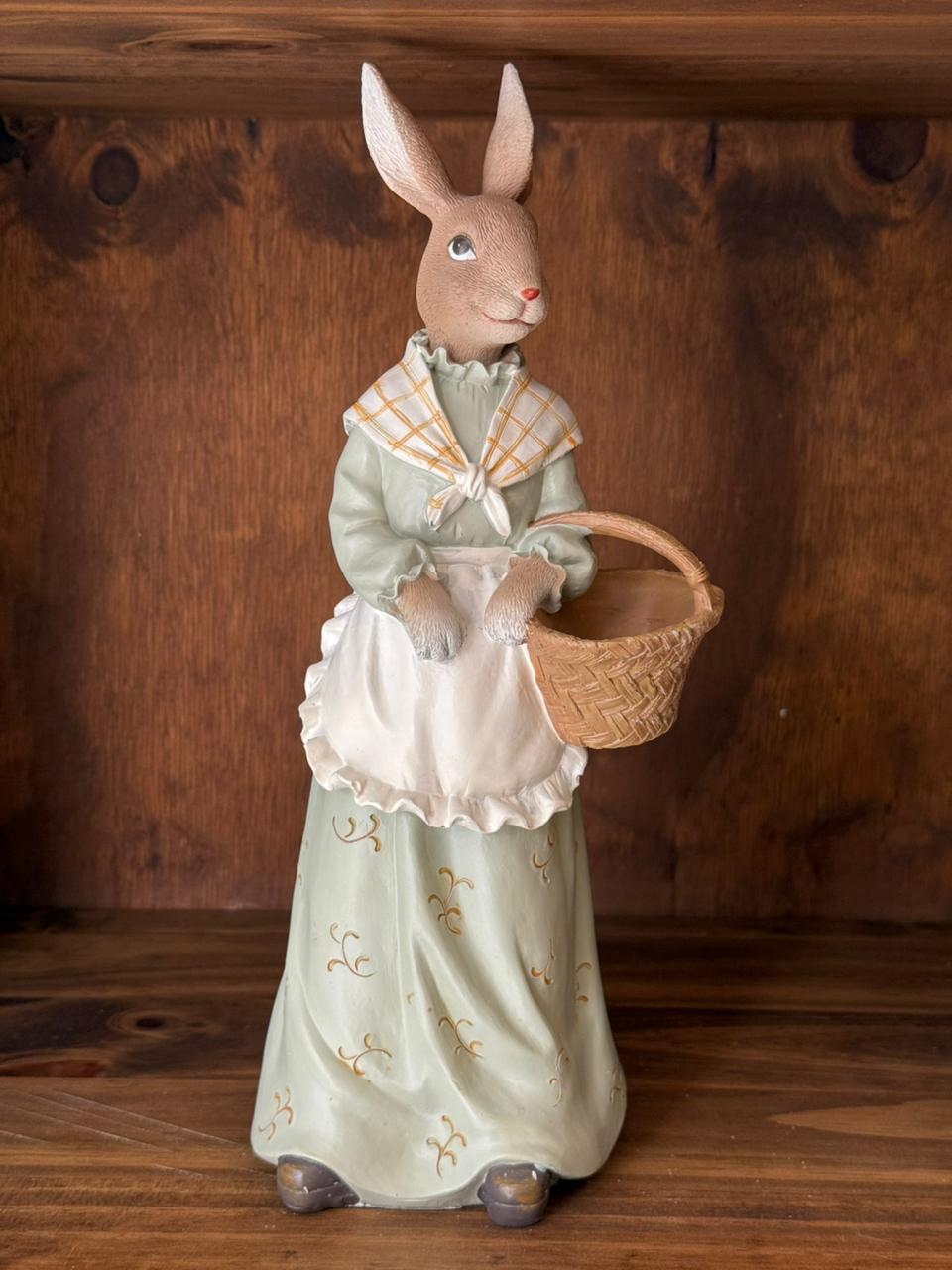 Boneca Coelha c/ cesta Bege e Verde