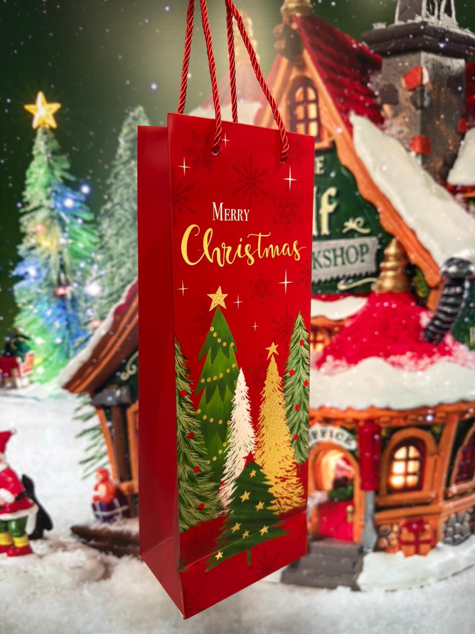 Sacola de Papel Vermelha com Árvores